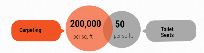 Studies from immunologist and microbiologist, Philip Tierno Ph.D. reveal that on average carpeting has 4,000 times the amount bacteria on it per square inch than toilet seats. Yes, your toilet seat is likely cleaner than your carpet! Yet, that is only one of the health risks associated with your carpet.